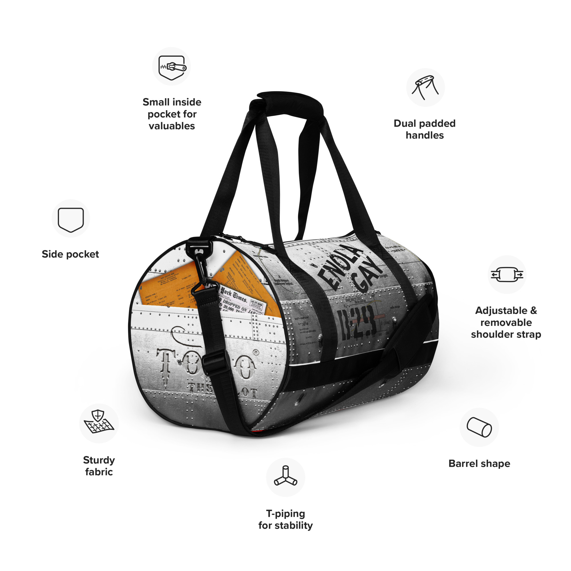 Elige llevar tu ropa y tus accesorios deportivos, tus artÃculos de piscina, o el mono y documentación de vuelo en esta bolsa con estampado de diseño único que te hará sentir «la bomba».